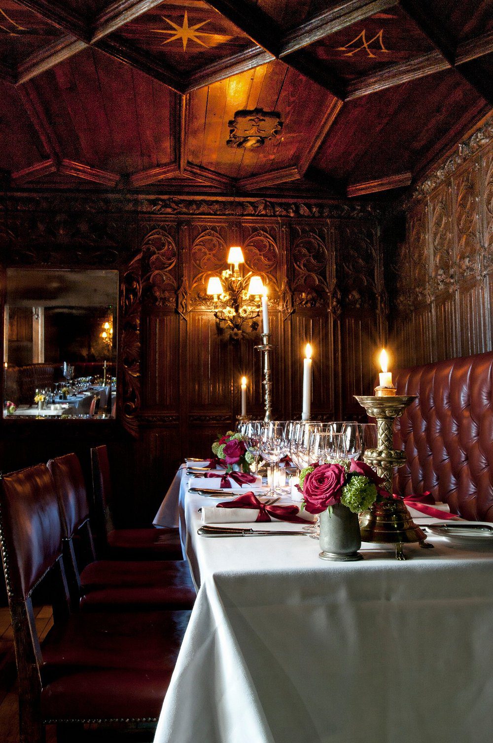 Ресторан містить безліч унікальних деталей, які мають величезну цінність. Старовинні двері, герби, розмальовані та позолочені стелі, церковні свічники, гобелени – все це створює дивовижну атмосферу. Причому цікаво, що практично всі ці речі є автентичними. Іншими словами, їх збережено ще з тих давніх часів.